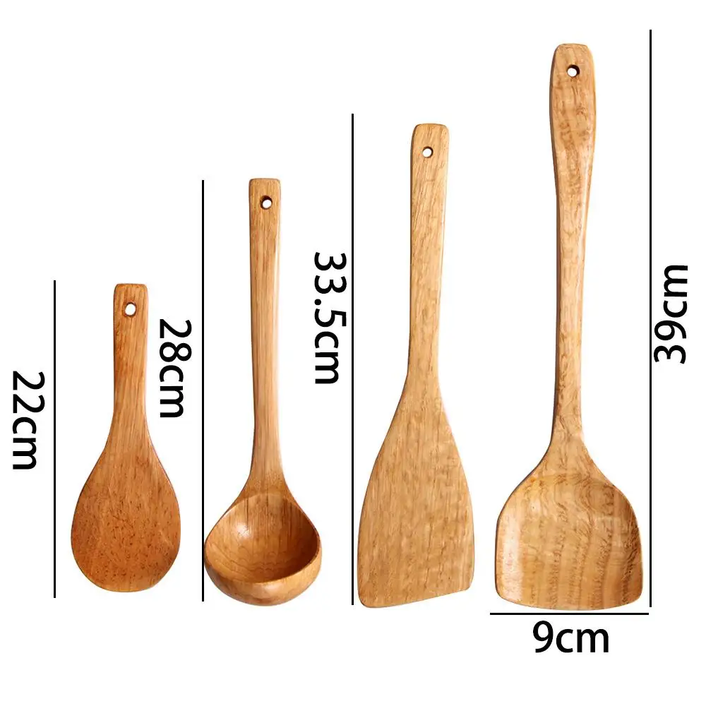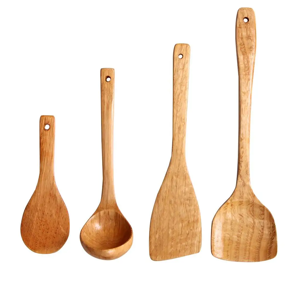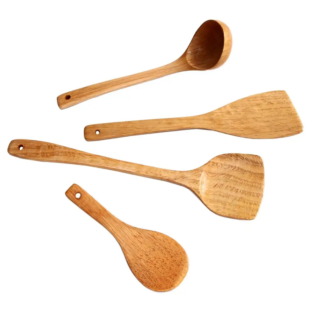 🌿 4-teiliges Holz Küchenutensilien Set – Natürlich kochen ohne Plastik